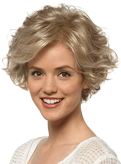 Meg is the perfect style for you! With her beautiful loose spiral curls this layered bob looks great with any face shape.