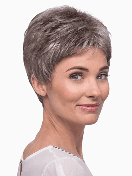 Razored layers short wispy bangs chic style. sound familiar? Nancy has all the style and attitude of our best selling petite sized wig but now in a regular sized cap.