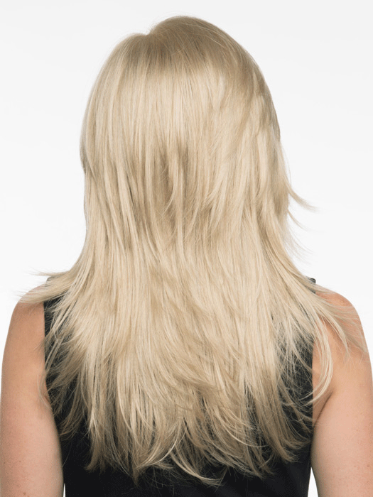 This lovely face-framing bombshell features a Mono Top construction for versatility in styling and long layers cut with wispy textured ends. Side-swept bangs that can be combed toward or away from the face compliment these trendy tresses.