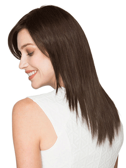 Code Mono by Ellen Wille is a long layered and super straight synthetic wig. The straight layers extend mid-back and have jagged ends to add a natural flat-ironed look. The lace front is hand-tied and extends into the part for the most natural look. You can have the side bang trimmed by your stylist to frame your face and make it flattering for you. The open wefted sides and back keep the cap feeling comfortable light and cool. Code Mono is a part of the Ellen Wille Hair Power collection. The lace front is placed temple to temple and each hair is individually hand-tied to create a natural looking hairline. The monofilament part adds to the extremely natural look and creates natural volume. The cap is designed with openings throughout the back to allow air to come through. The super straight synthetic hair is pre-styled and ready-to-wear out of the box.