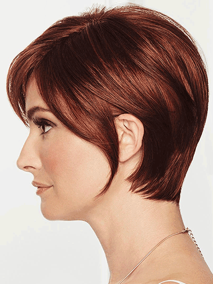 The perfect balance of modern and classic with a side-swept bang face-framing layers sculpted nape and lace front monofilament part.