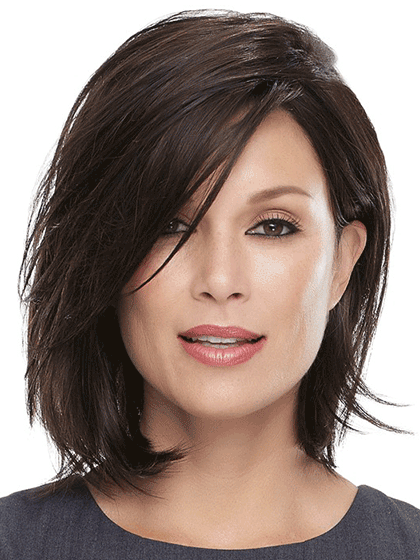 The bob evolves! Length and layers refresh this timeless style. The SmartLace front monotop and 100 percent hand tied cap provide a natural appearance and fit.