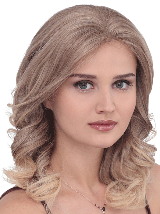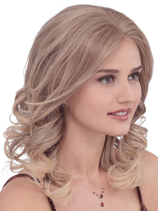 Sweeping along the shoulders this long gorgeous non-permanent curly style offers limitless possibilities. Beautiful human hair and a natural and flawless lace front hair line for comfort and confidence. From that upscale lunch to that night on the town this lovely and sophisticated look does it all! No Bang.