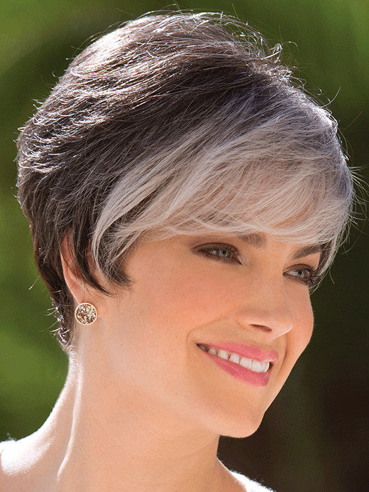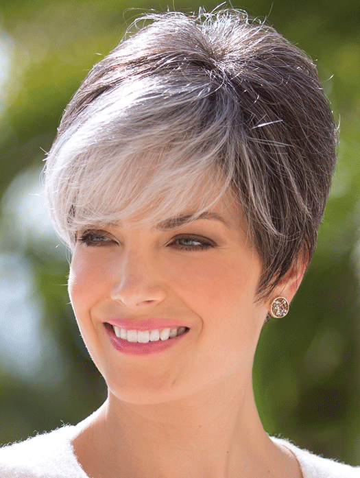 Modern swept fringe and tapered nape unite in creating this poised pixie.