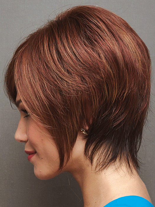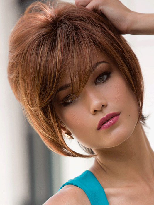 Razor finished tiers and arched ends compliment this geometric fringed bob.