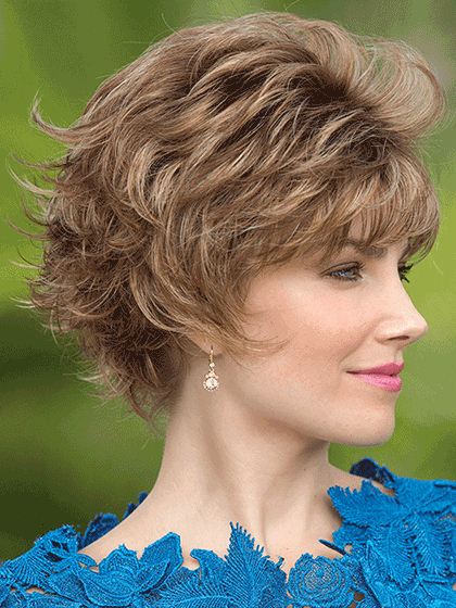 Maixed layers with beveled ends build attitude into this style with a sophistcatedkick.