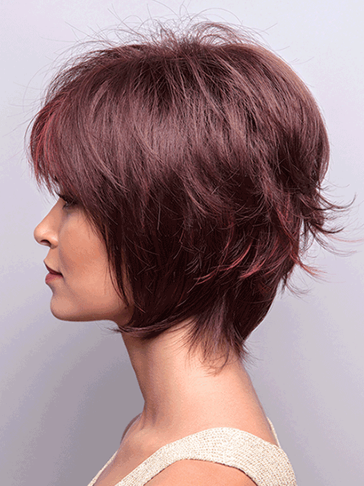 Sassy tousled layered bob with fringe. Top selling style available in a larger cap size. approximately 1.5 inch larger than the original size!