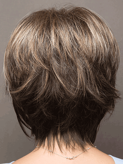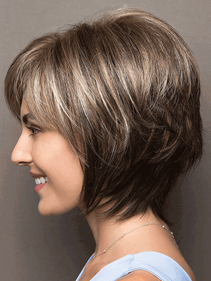 Sassy tousled layered bob with fringe. One of Noriko best sellers. now available in a partial monofilament cap.