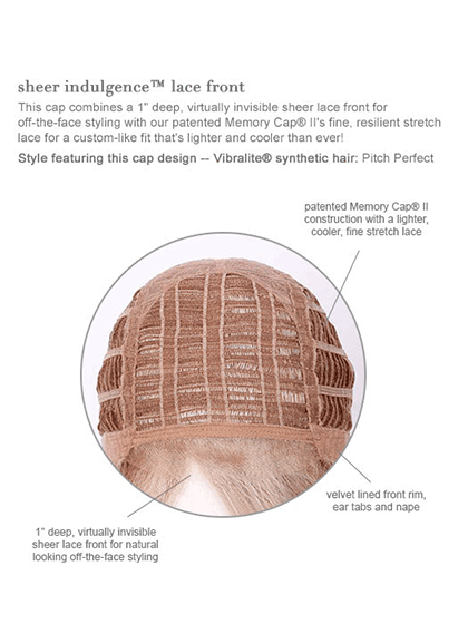 This sexy feminine silhouette features long sweeping sides that beautifully blend with all over waved layers that fall to mid back. The Sheer Indulgence lace front and Memory Cap II base allows for optional off the face styling and a light cool custom like fit.