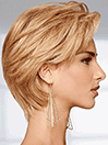 So short so chic. The 100% human hair can be tucked behind the ears and styled like a pixie or a short bob with face framing layers. Looks are endless when you pair human hair with a hand knotted monofilament top. Change the part and hairstyle as often as you change your mind. It is the perfect time to take the plunge with this short cut that works on everyone.