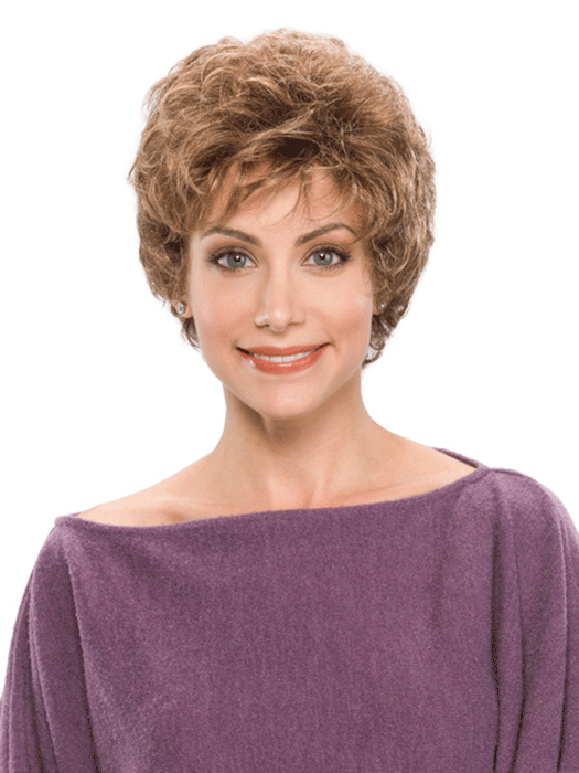 Mabel is the perfect classic style with all-over soft curls that can be worn on or off the face. The bangs can be styled on the forehead or swept up for a beautiful soft look.