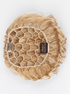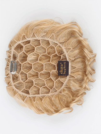 Topper has an oval 5 inch by 6 inch honeycomb base with 5 inches of perfectly curled hair with toupee clip attachments.