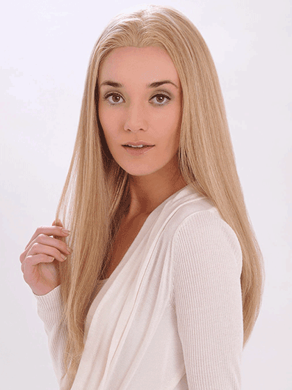 Exclusive patented Optimum Cuticle Hair with lace front. Great shine healthy look with natural hairline.