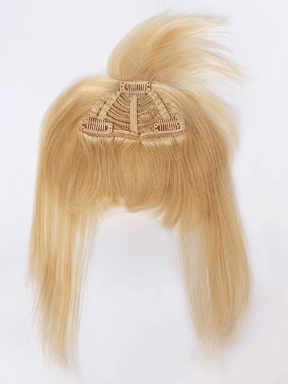 Add a full fringe with the Add On Fringe Human Hairpiece by Wig Pro's Remy human hair collection. Sophisticated and flattering this is a full bang piece displaying a blunt cut and face framing layers on each side that attach easily with three pressure-sensitive clips.