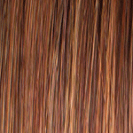 | Dark Root, Med Brn base with 50/50 of Med Copper Blond + Light Golden Blond Highlights |