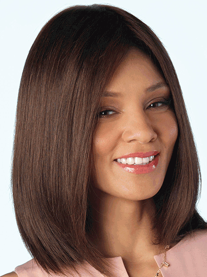 Blair by Amore is shoulder length with natural layers and side-swept fringe. It is made with 100% Remy human hair of the highest quality. The lace front and monofilament cap construction create the illusion of a natural hairline and natural hair growth where the hair is parted. You will look great and feel great in this beautiful style!