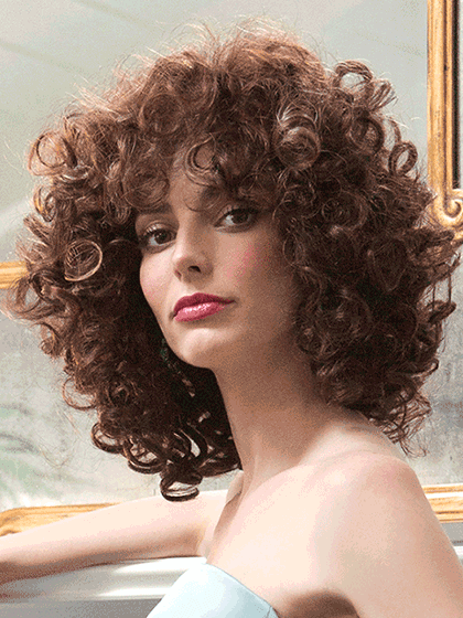 Touchable tight ringlets give luscious volume to this shoulder length style.