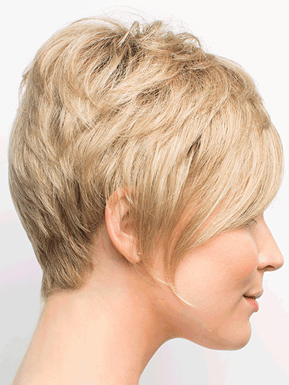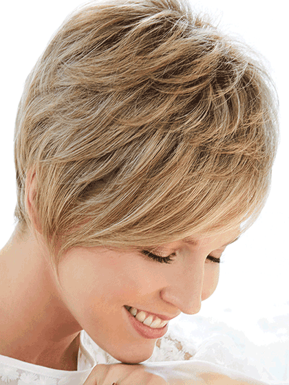 Long side-fringe with textured flipped ends for a carefree look. Top hair ventilation with extended lace and soft-airy net Wefts sewn onto soft light breathable material.
