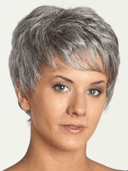 Long bang with soft wave curl and tapered back.
