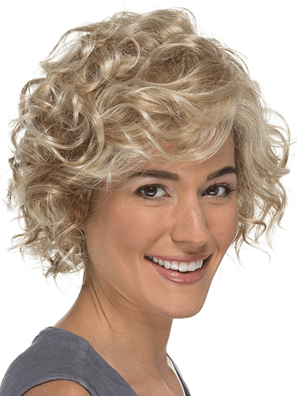 Are you ready for a fresh new take on the classic bob style? Put on Madison a short curly bob with tons of attitude. Madisons beautiful curly locks are layered for a light bouncy texture that looks and feels effortlessly natural.