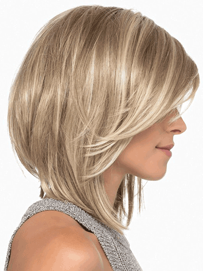 Sky's not a traditional lob. This look is both sexy and chic- the perfect amount of versatility all in one style. Her slightly angled layers and flowing side bangs make this shoulder length style simple and sleek for a perfect evening.