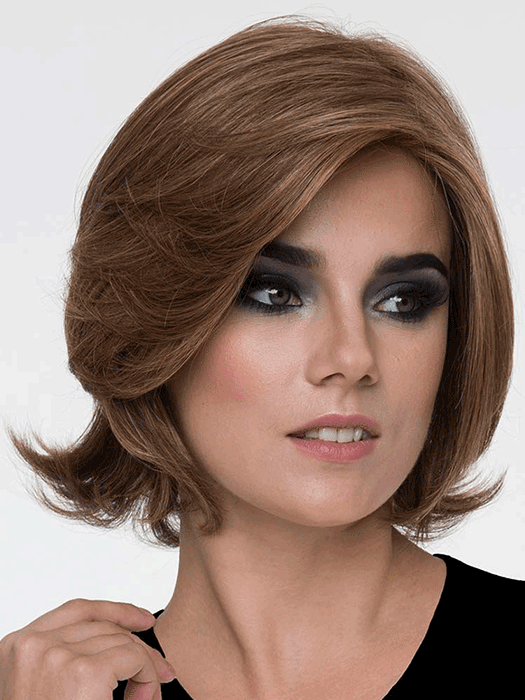 Sabrina by Envy has face-framing layers and flipped out ends add a touch of whimsy to any wardrobe. Made with our exclusive Envyhair heat-friendly fiber blend and constructed from a Mono Top with wefted sides and back this wig can be heat styled any which way you choose.