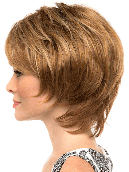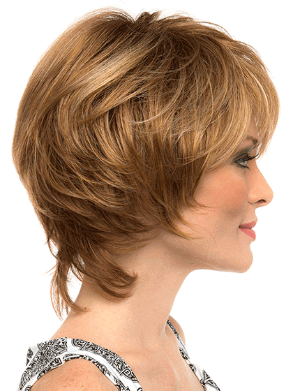 Long layers at the nape of the neck paired with soft volume at the crown give Savannah by Envy that sweet sexy girl-next-door look. The Mono Top construction means you can part left right or down the middle without revealing anything but style.