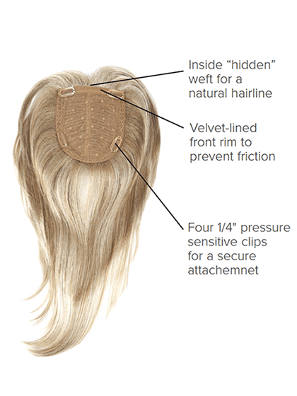 A long layered top-of-head piece designed with a soft wave to seamlessly blend with your own hair adding coverage at the crown and luxurious length and volume throughout.