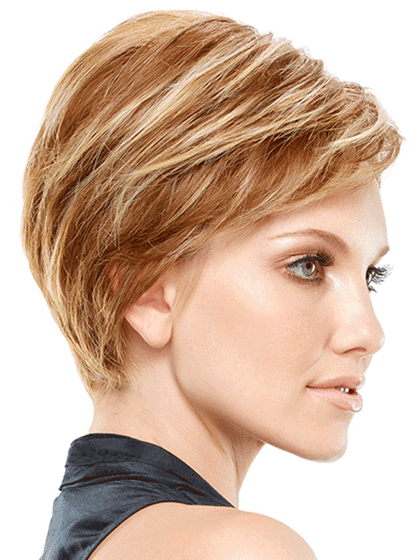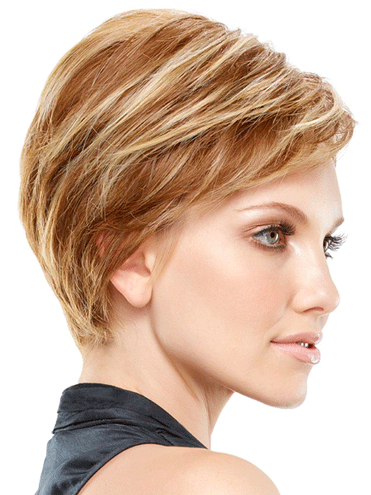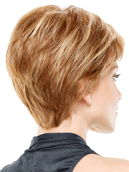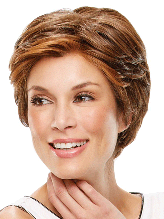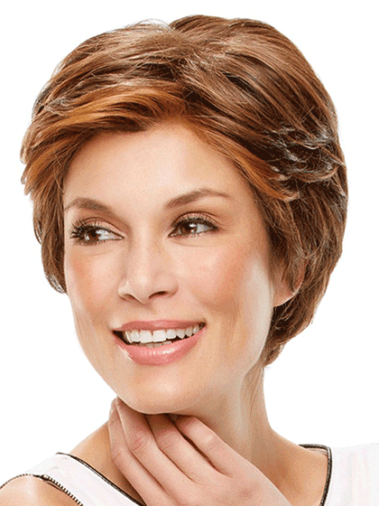 Posh meets practical in this elegant short style. Heat friendly HD fiber a lace front and a hand tied monofilament cap achieve an ultra natural look and feel.