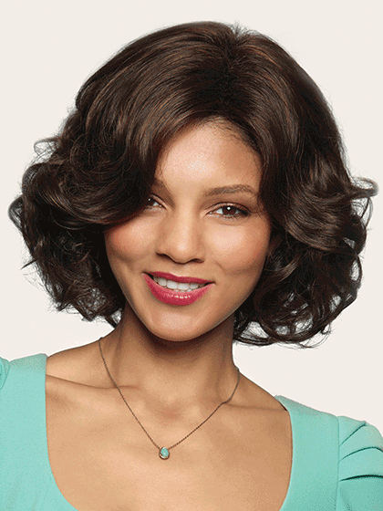 Curly medium sized machine made top piece secured with 4 toupee clips.