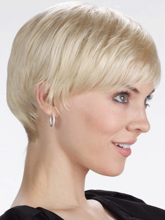 Precision cut asymmetrical short with a softly tapered nape. Arden's versatile style can be worn spiked or smooth right out of the box. Light weight easy care chic fashion.