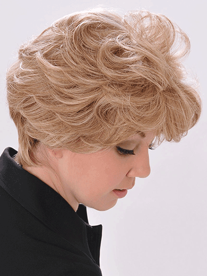 Soft curls short and elegant cut with tapered back compose a graceful figure.